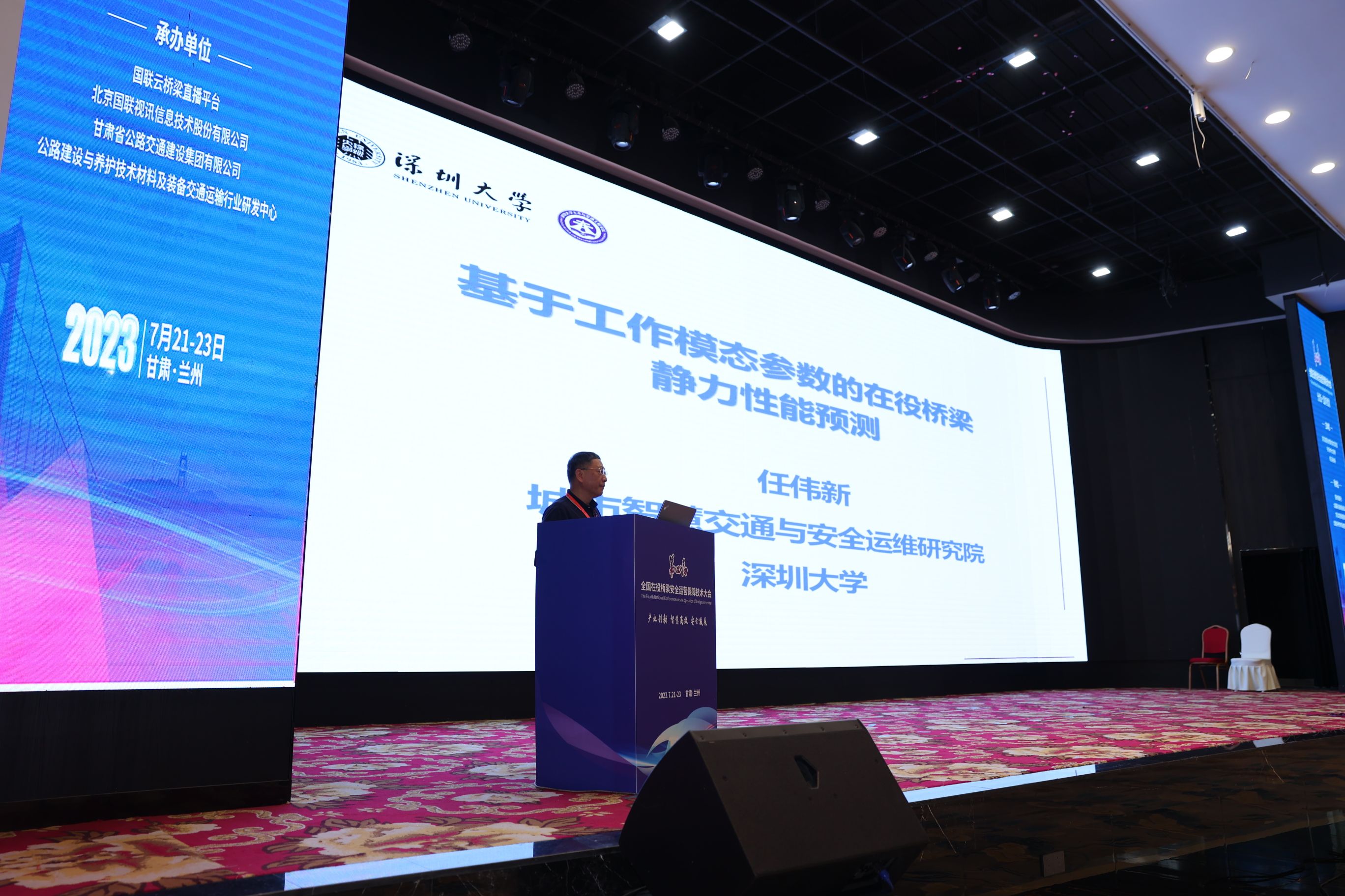 ?会议伊始,现任深圳大学土木工程与交通工程学院特聘教授、桥梁工程博士、清华大学博士后任伟新教授以《基于工作模态参数的在役桥梁静力性能预测》为主题展开分享,任伟新先生首先就该课题的研究背景展开解读,并围绕强迫振动试验法、自由振动试验法、环境振动试验法三个方面对课题进行深入分析。