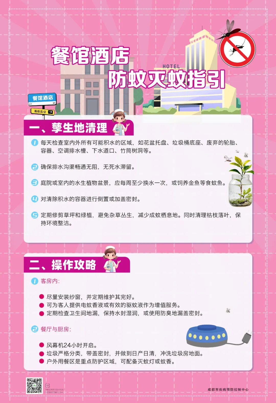 类场所,提供精准防蚊妙招。一图一场景,简单又实用,快来对照清理,共建无蚊环境!