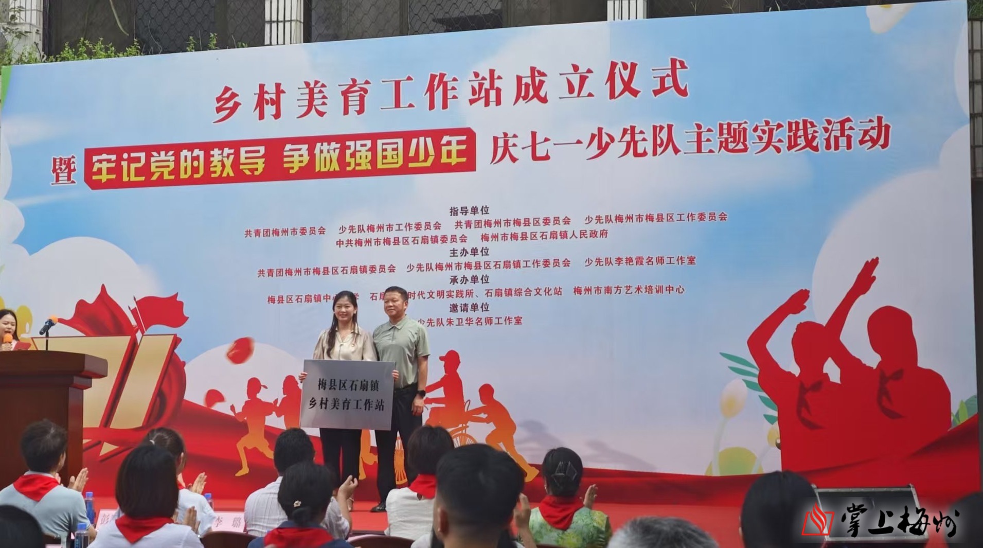 据了解,石扇镇乡村美育工作站是由石扇镇新时代文明实践所、少先队李艳霞名师工作室和梅州市南方艺术培训中心共同打造的一个“立足乡土、服务大众、传承创新”的美育实践公益平台,旨在为广大乡村群众提供更加优质的美育教育资源,进一步丰富农村精神文化生活,用艺术点亮乡村,助力“百千万工程”。