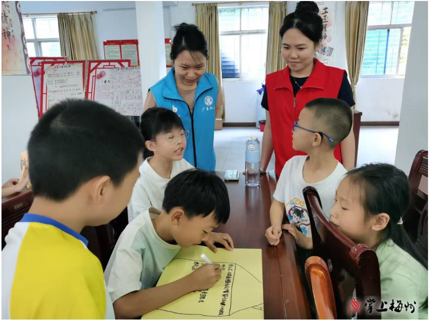 暑期公益课堂筹备前期,新城办组织专业团队调研。通过入户访谈、儿童能力测评了解需求,结果显示85%的家庭希望解决孩子“作业无人辅导”问题,62%的儿童期待参与艺术活动。基于此,暑期公益课堂设计四大特色课程:“作业加油站”邀返乡大学生辅导,以游戏化学习提升兴趣效率;“创意工坊”由嘉应学院师生带队,开展手工绘画课程激发创造力;“安全小卫士”通过情景模拟、动画教学传授安全知识;“心灵茶话会”由社工引导孩子表达情绪,培养健康心理。