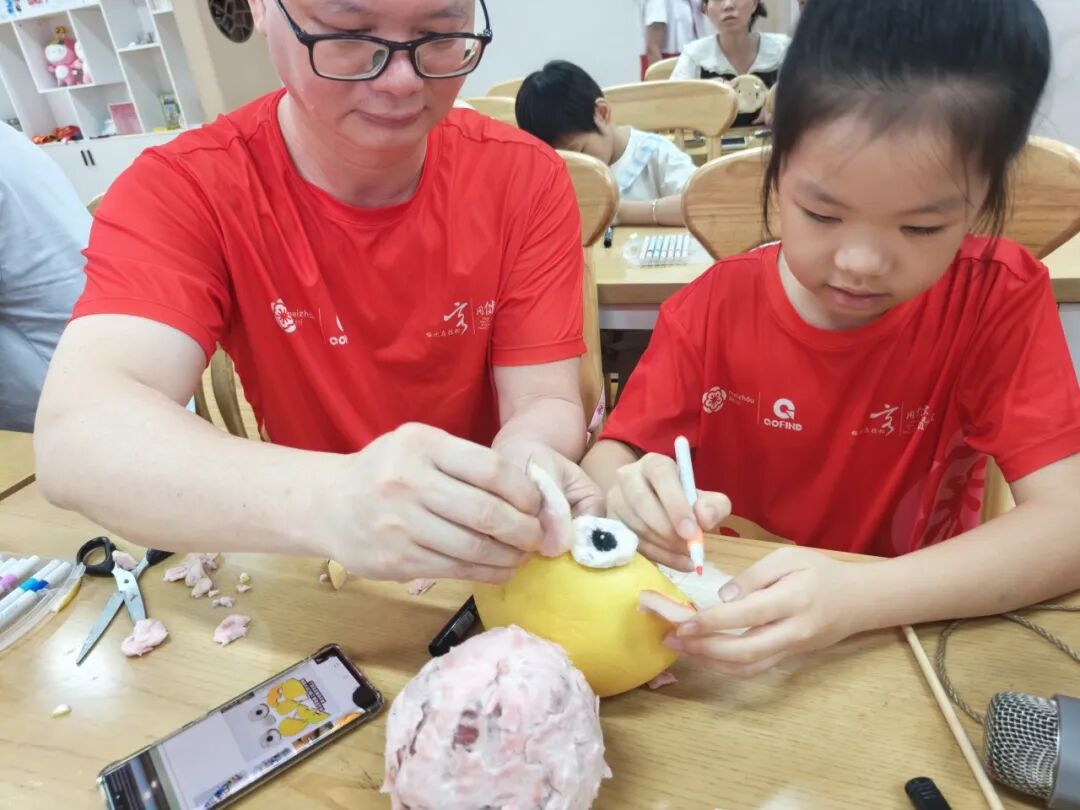 活动尾声,亲子协作 DIY 红军木偶:家长辅助整理材料,孩子专注装饰细节,一个个鲜活的红军木偶完成,为整场红色阅读活动画上温暖句号。