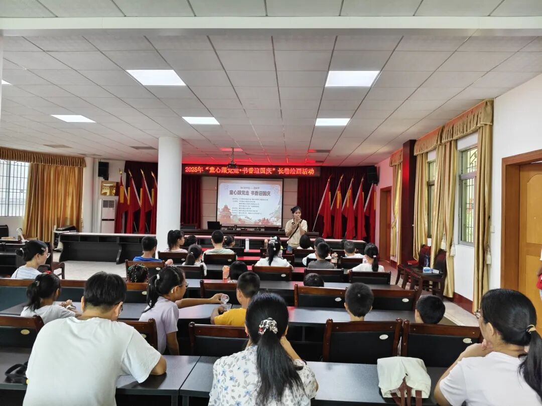 10月1日上午,“童心跟党走?书香迎国庆” 国庆节长卷绘画活动在梅县区图书馆二楼讲座厅热闹开启。活动现场,伴随着庄严的《义勇军进行曲》,升国旗视频缓缓播放。在场的孩子们目光坚定,跟着视频旋律认真奏唱国歌,嘹亮的歌声里满是对祖国的热爱与崇敬,瞬间点燃了现场的爱国氛围,为活动拉开了庄重的序幕。